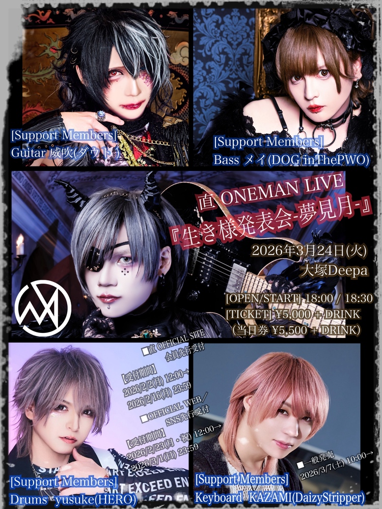 🎟️2026年3月24日(火) 直 ONEMAN LIVE 『生き様発表会-夢見月-』チケット受付開始!