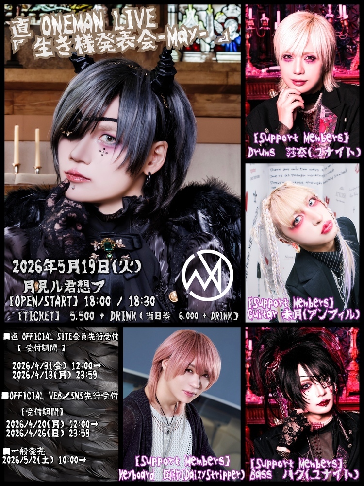 🎟️2026年5月19日(火) 直 ONEMAN LIVE 『生き様発表会〜May〜』チケット受付開始!